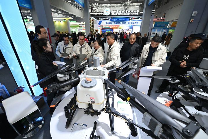 2025年10月25日,參觀者在楊凌農(nóng)高會(huì)上了解大疆農(nóng)業(yè)無(wú)人機(jī)。新華社記者 李一博 攝