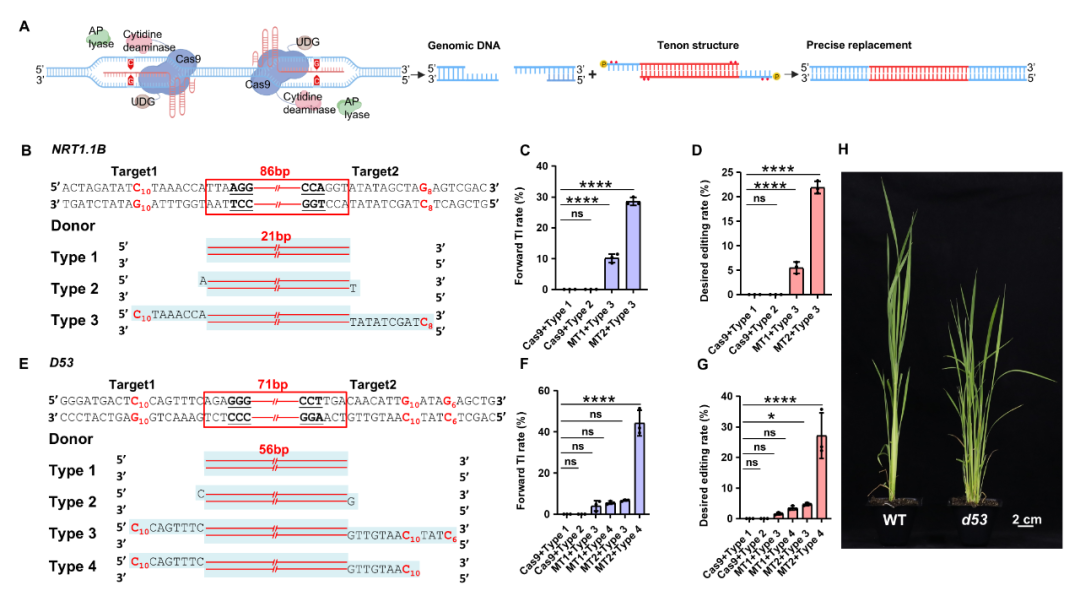 在作物育種領域,實現(xiàn)精準、無瘢痕的DNA片段插入與替換,是突破品種改良瓶頸和保障國家糧食安全的核心技術。該研究成功開發(fā)出一種名為“榫卯連接系統(tǒng)”(MT)的新型基因編輯系統(tǒng),可實現(xiàn)靶向DNA高效插入與替換,有望為大片段基因編輯開辟新方法。