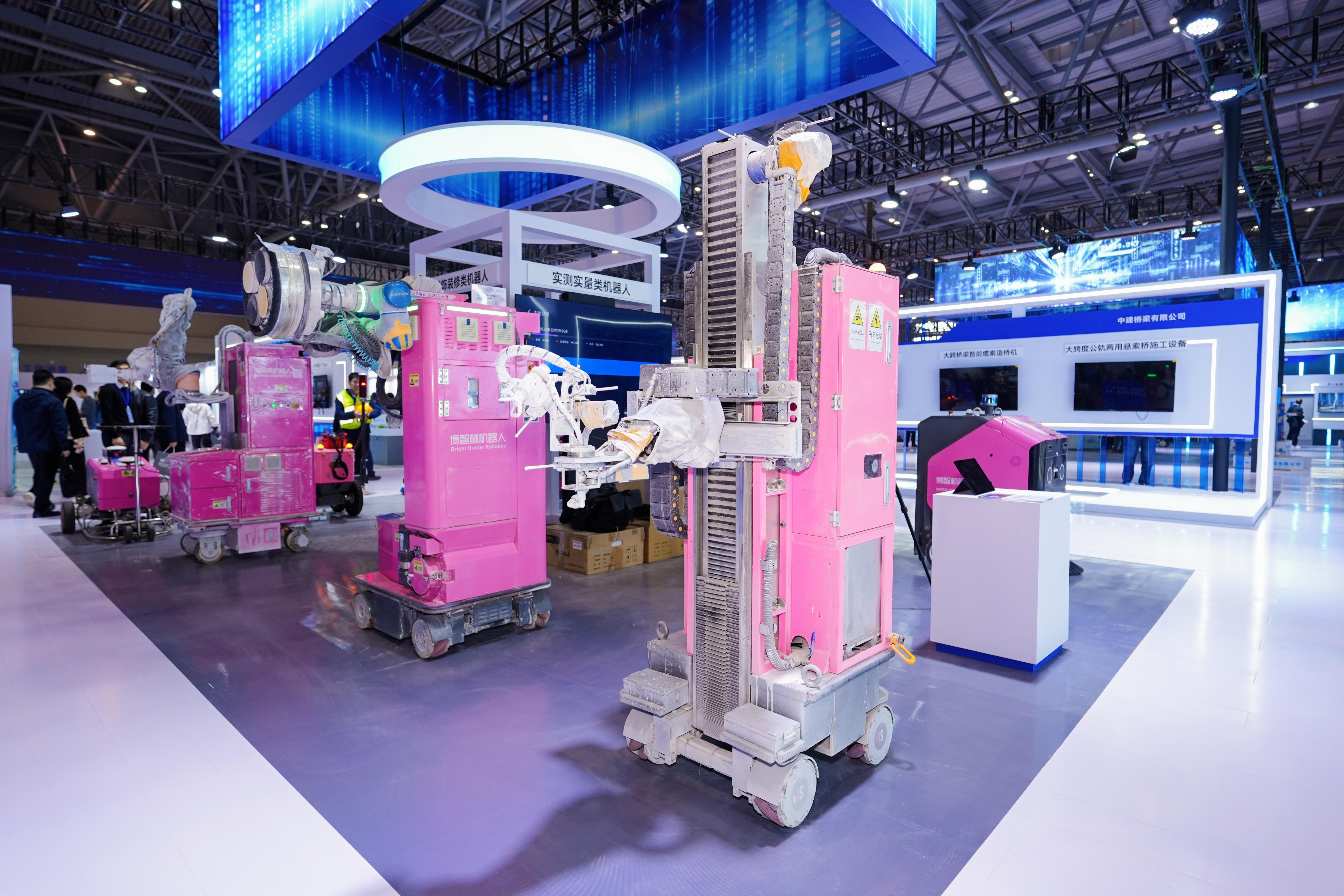 在中建三局集團有限公司展區(qū),全國首臺裝配式建筑一體化施工作業(yè)集成平臺、頂升自加節(jié)塔機、5G智能塔機、人工智能巡檢機器狗等20余款裝備技術(shù)產(chǎn)品集中亮相,這些裝備已經(jīng)在重慶多個項目中應(yīng)用。