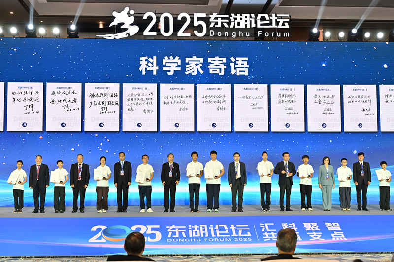 本屆論壇特別關(guān)注青年科技人才培養(yǎng)。李德仁、丁烈云、丁榮軍、謝先啟、孫和平、李培武、楊春和、金梅林8位院士為2025年度全國(guó)青少年創(chuàng)·造實(shí)踐活動(dòng)獲獎(jiǎng)代表頒獎(jiǎng)并手寫(xiě)寄語(yǔ),傳遞創(chuàng)新火種和科學(xué)精神。