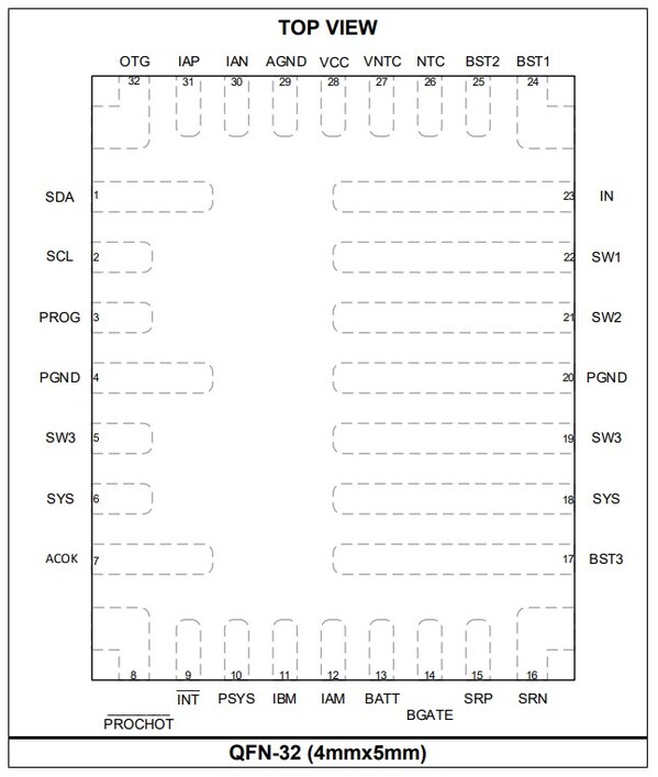 MP2764主要產(chǎn)品特性:支持2-4串電池,單串電池電壓可達4.8V,支持最大28V絕對輸入電壓和最大22V工作電壓,全集成內(nèi)部功率FETs,NVDC電源路徑管理功能,所有充電和反向放電參數(shù)均為I2C/SMBus可編程,用于靈活配置充放電參數(shù),Buck充電模式下支持高達8A的系統(tǒng)和充電電流,放電模式下高達5A的輸出電流,兼容USB PD PPS 放電模式4V-21V,集成IMVP9以及PSYS系統(tǒng)功率監(jiān)控,12bit ADC實時監(jiān)測充放電電壓和電流信息,完備的充放電保護功能,包括輸入過壓保護(OVP)、電池過壓保護、系統(tǒng)過壓保護、過溫關(guān)斷保護、電池溫度保護等,還集成了VMIN主動保護(VAP)功能,采用QFN-30(4mm*5mm)封裝。