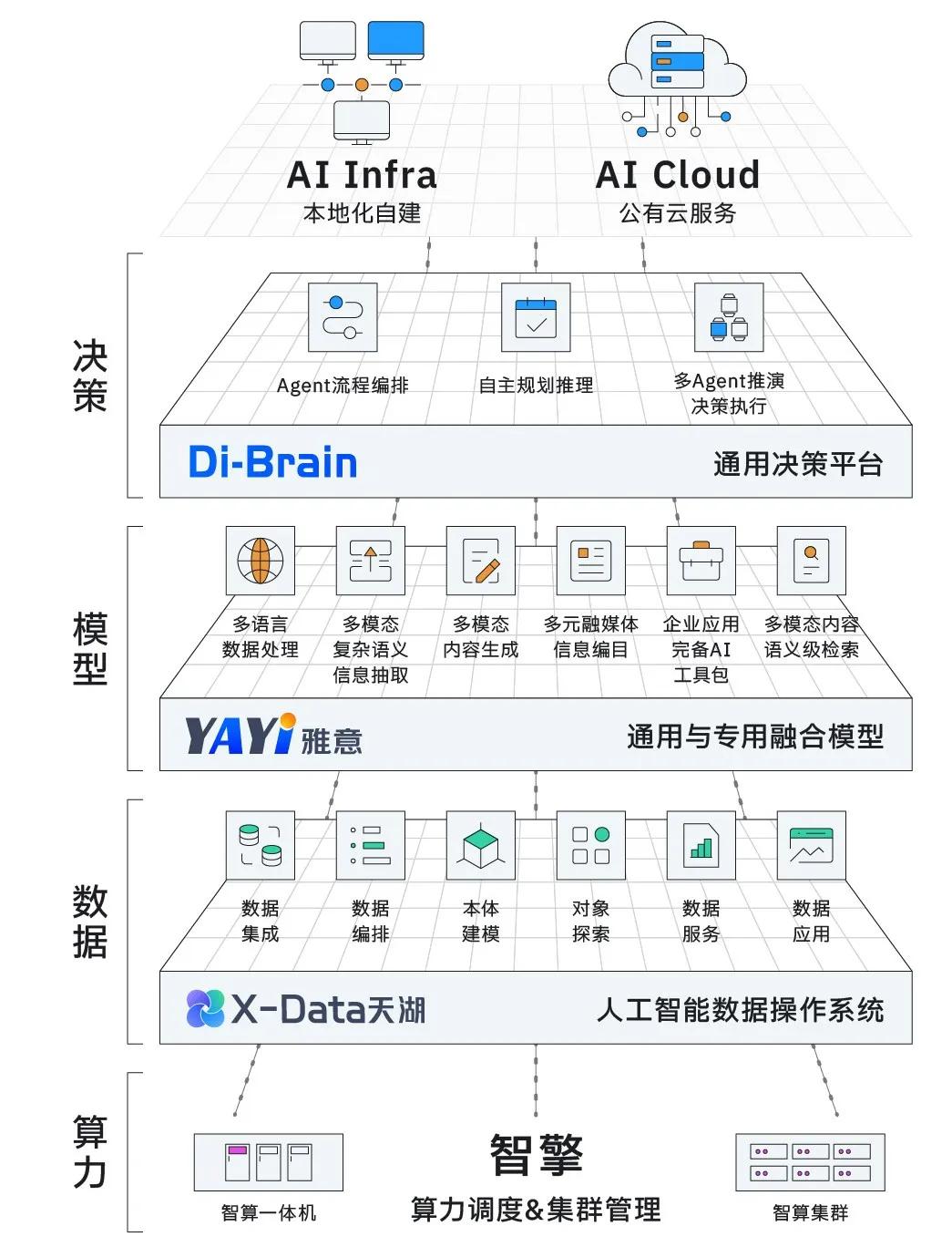 在模型層面,DIOS行業(yè)級大模型,讓AI真正理解業(yè)務(wù)。內(nèi)置通專融合的雅意系列模型,DIOS具備多語言、多模態(tài)處理能力,在跨語言理解、復(fù)雜信息抽取、內(nèi)容生成、行業(yè)數(shù)據(jù)增強、智能任務(wù)規(guī)劃等方面表現(xiàn)領(lǐng)先,兼具高遷移性與算力調(diào)度效率。此外,平臺融合中國科學(xué)院磐石科學(xué)基礎(chǔ)大模型與自研D1決策大模型,提供“科學(xué)思維+決策推演”的智能力,支撐多行業(yè)復(fù)雜場景智能應(yīng)用。