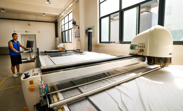 自動裁剪機(jī)如同精準(zhǔn)的“剪刀手”,將原材料按設(shè)計圖紙裁切成規(guī)整部件,一天即可完成兩千個板材的裁剪;熱合機(jī)以恒定的溫度與壓力,讓產(chǎn)品接縫處牢固又平整……隨著自動裁剪機(jī)、自動點(diǎn)焊機(jī)、熱合機(jī)等自動化設(shè)備的引進(jìn),原來一個要40多人的車間現(xiàn)只需要12人左右,不僅如此,ERP、MES、WMS等軟件系統(tǒng)高效聯(lián)動,打通了生產(chǎn)加工的各個環(huán)節(jié),實(shí)現(xiàn)智慧管控、能源節(jié)能管控、智慧采購、智慧排產(chǎn)、智慧生產(chǎn)、智能倉儲。