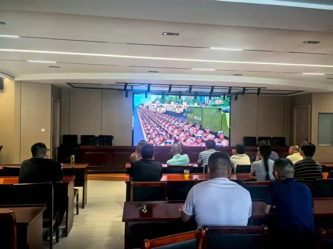 鎮(zhèn)江高新區(qū)商務局全體干部職工集中觀看紀念中國人民抗日戰(zhàn)爭暨世界反法西斯戰(zhàn)爭勝利80周年大會及閱兵儀式直播。此次活動是致敬歷史、緬懷先烈的一場重要典禮,展示了我國國防科技的強大實力,彰顯了中華民族捍衛(wèi)和平的堅定決心。觀看過程中,大家神情專注,沉浸式感受閱兵現(xiàn)場的莊嚴氛圍和磅礴氣勢,內(nèi)心深受震撼、倍感自豪。大家紛紛表示要傳承和弘揚偉大抗戰(zhàn)精神,將愛國熱情轉化為銳意進取的工作動力,以更加昂揚的姿態(tài)投身商務工作實踐,為高新區(qū)高質(zhì)量發(fā)展貢獻力量。