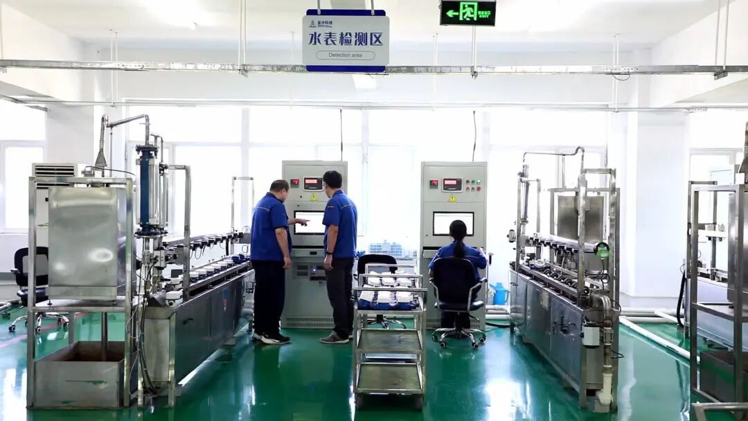 在濟(jì)寧金水科技有限公司,技術(shù)人員正在調(diào)整無(wú)磁遠(yuǎn)傳水表的相關(guān)參數(shù)。