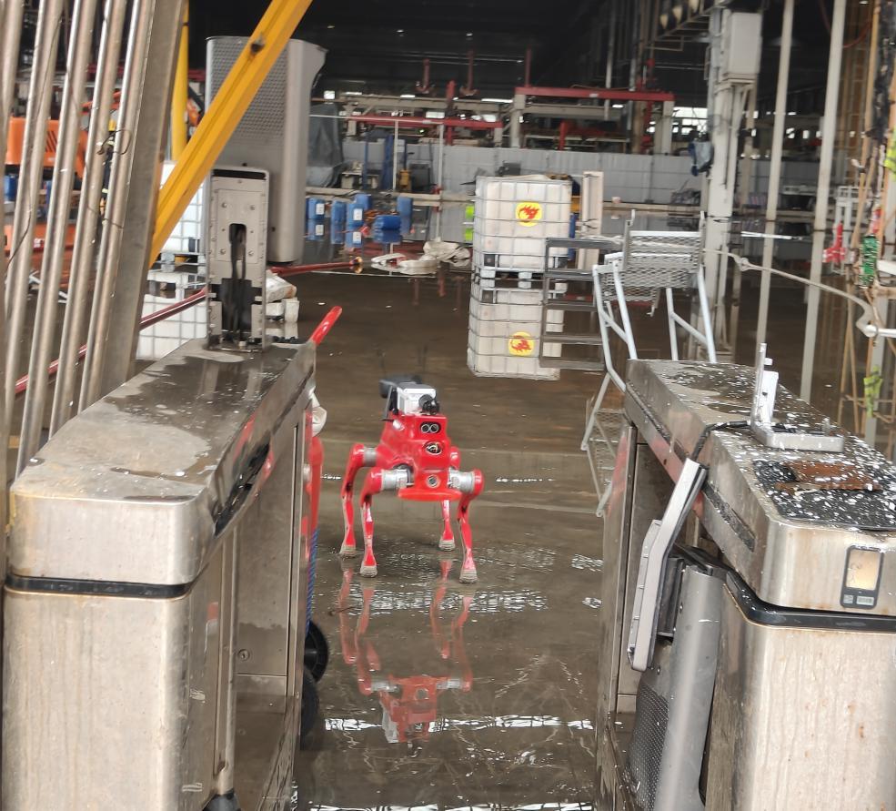 在大跨度大空間廠房滅火救援實(shí)戰(zhàn)演練現(xiàn)場,火災(zāi)初期偵察階段,多模態(tài)消防機(jī)器狗可以迅速部署到火災(zāi)現(xiàn)場,利用其攜帶的各種傳感器進(jìn)行全方位的偵察,將現(xiàn)場的圖像、視頻實(shí)時(shí)回傳至指揮中心。