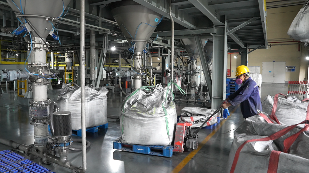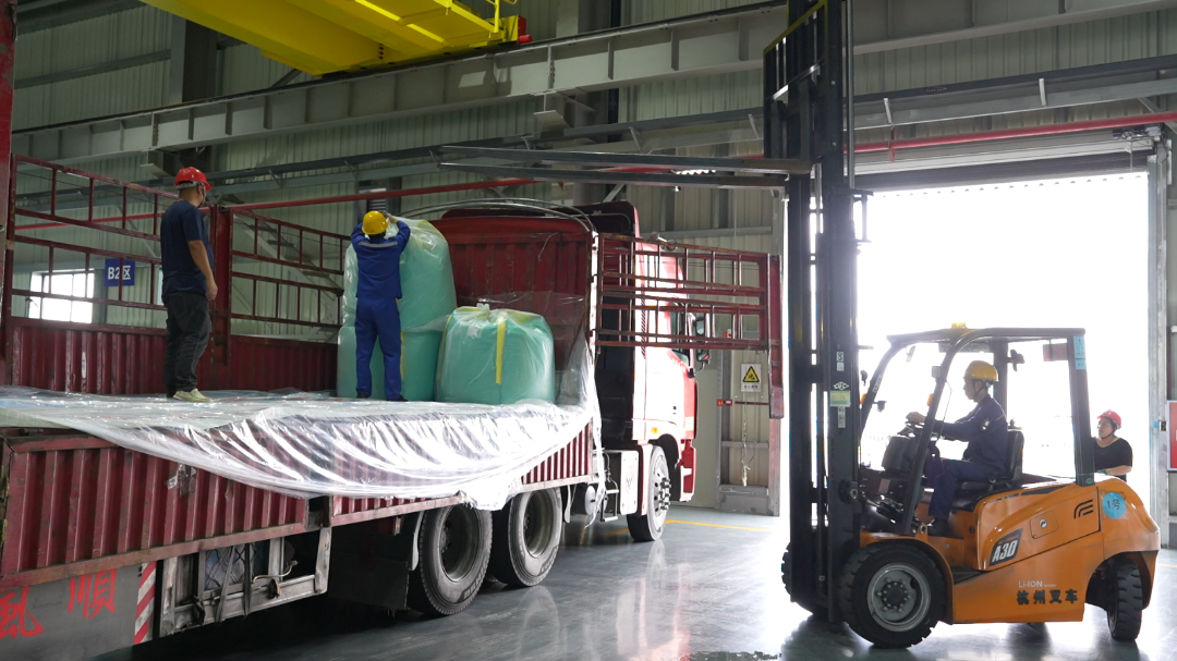 在海創(chuàng)尚緯倉庫,工人正將一批人造石墨負(fù)極材料產(chǎn)品裝車,這批產(chǎn)品將陸續(xù)發(fā)往全國(guó)各地的客戶手中。距離試生產(chǎn)僅僅不到一年時(shí)間,如今海創(chuàng)尚緯各產(chǎn)線全線貫通,企業(yè)產(chǎn)能正穩(wěn)步爬坡并有效發(fā)揮。