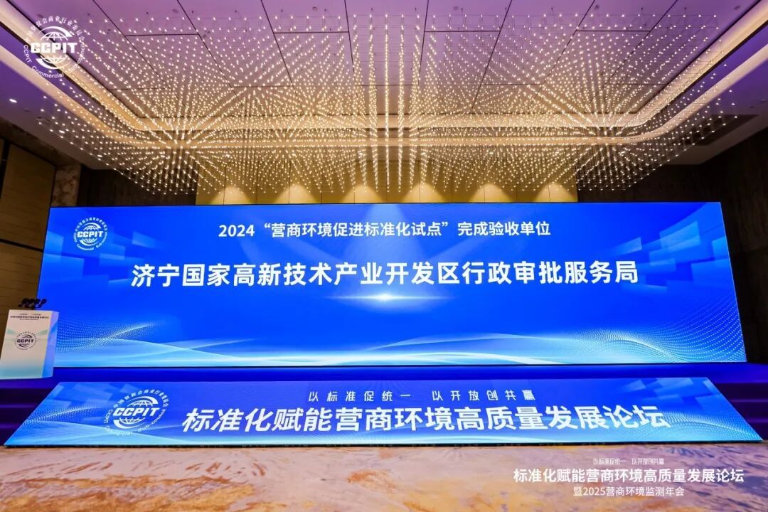 12月5日,標(biāo)準(zhǔn)化賦能營(yíng)商環(huán)境高質(zhì)量發(fā)展論壇暨2025營(yíng)商環(huán)境監(jiān)測(cè)年會(huì)在北京召開。會(huì)上,全國(guó)營(yíng)商環(huán)境促進(jìn)標(biāo)準(zhǔn)化試點(diǎn)驗(yàn)收名單正式揭曉,濟(jì)寧高新區(qū)行政審批服務(wù)局爭(zhēng)創(chuàng)的“企業(yè)滿意度提升服務(wù)標(biāo)準(zhǔn)化試點(diǎn)”憑借扎實(shí)的實(shí)踐成效、創(chuàng)新的服務(wù)體系,順利通過驗(yàn)收。