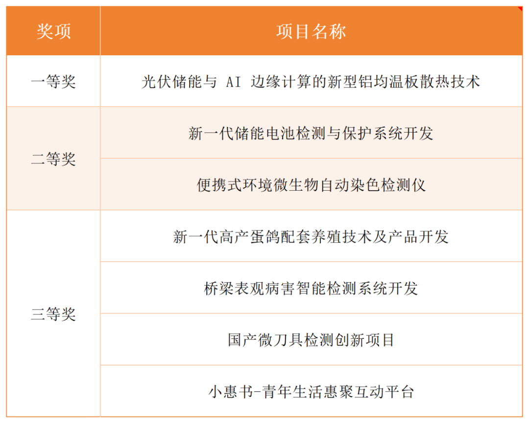 本屆大賽獎項覆蓋科技創(chuàng)新賽道、企業(yè)命題賽道、“百千萬工程”賽道和產(chǎn)教融合賽道4個賽道,31個具有創(chuàng)新力、成長性與社會價值的項目脫穎而出,榮獲一、二、三等獎以及鄉(xiāng)村振興貢獻(xiàn)獎。