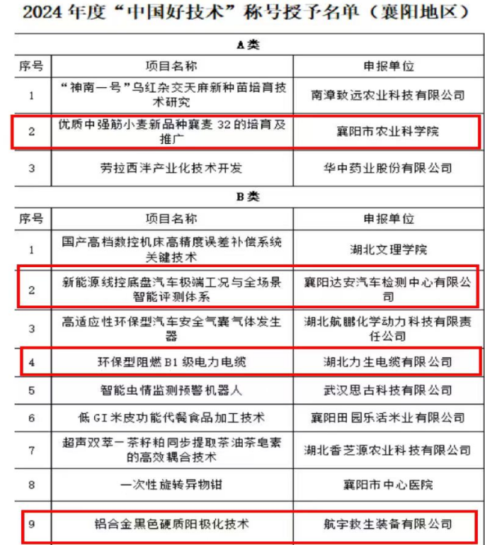 此次獲評的四項技術(shù),均來自襄陽高新區(qū)主導(dǎo)產(chǎn)業(yè)細分領(lǐng)域關(guān)鍵技術(shù)突破:襄陽市農(nóng)業(yè)科學院的優(yōu)質(zhì)中強筋小麥新品種襄麥32的培育及推廣技術(shù)破解優(yōu)質(zhì)高產(chǎn)兼顧難題,為糧食安全提供“襄陽方案”;襄陽達安汽車檢測中心有限公司新能源線控底盤汽車極端工況與全場景智能評測體系實現(xiàn)極端工況全場景評測,助力汽車產(chǎn)業(yè)高端化智能化轉(zhuǎn)型;湖北力生電纜有限公司研發(fā)環(huán)保型阻燃B1級電力電纜,以綠色創(chuàng)新賦能基礎(chǔ)設(shè)施升級;航宇救生裝備有限公司鋁合金黑色硬質(zhì)陽極化技術(shù)為航空航天裝備提供高品質(zhì)表面處理方案,鞏固高端制造優(yōu)勢。