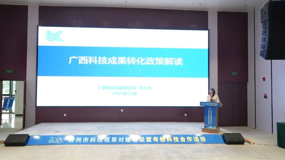 為深入貫徹創(chuàng)新驅(qū)動(dòng)發(fā)展戰(zhàn)略,破解企業(yè)轉(zhuǎn)型升級(jí)技術(shù)瓶頸,促進(jìn)先進(jìn)科技成果與企業(yè)實(shí)際需求深度融合,12月5日由柳州市科學(xué)技術(shù)局、柳州高新技術(shù)產(chǎn)業(yè)開發(fā)區(qū)管理委員會(huì)、廣西東盟技術(shù)轉(zhuǎn)移中心聯(lián)合主辦的2025年柳州市科技成果對(duì)接洽談暨粵桂科技合作活動(dòng)在柳州772數(shù)字文化創(chuàng)意產(chǎn)業(yè)園圓滿舉行。來自粵桂兩地的高校、科研院所專家、企業(yè)代表等100多人齊聚一堂,共話科技合作,共推成果轉(zhuǎn)化。