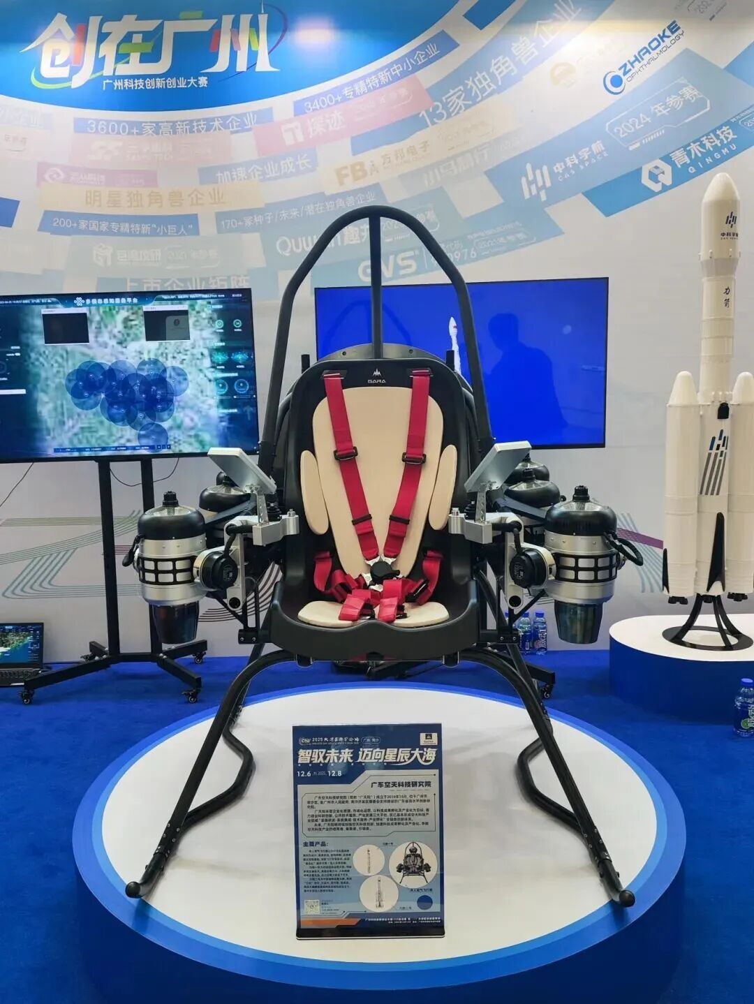 廣東空天科技研究院帶來(lái)了單人噴氣飛行器,其以分布式矢量渦噴陣列為動(dòng)力,具有整體尺寸布局小、響應(yīng)靈活、部署依賴性低等特點(diǎn),可載人執(zhí)行特勤執(zhí)法、緊急救援、飛行表演等任務(wù)。