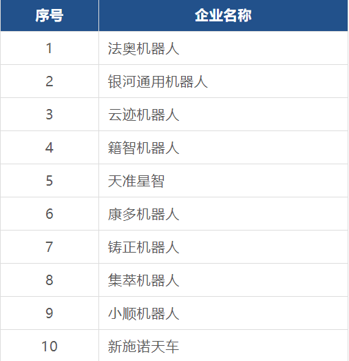 首批具身智能“十獅”名單