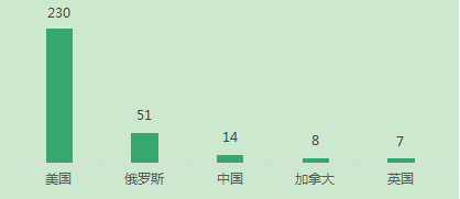 圖1 世界主要國家發(fā)射低軌通信衛(wèi)星數(shù)量(顆)