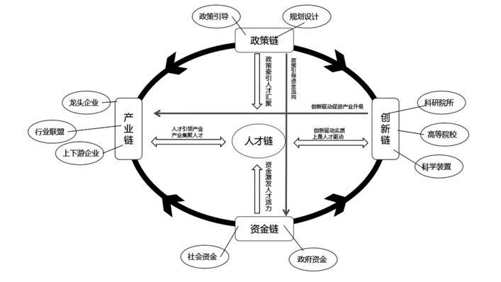 人才鏈、創(chuàng)新鏈、產(chǎn)業(yè)鏈、政策鏈、資金鏈“五鏈”融合的過程,其實是政產(chǎn)學(xué)研金等各類創(chuàng)新主體協(xié)同發(fā)展的過程,其共同形成地區(qū)發(fā)展資源、環(huán)境、物質(zhì)和生態(tài)的大系統(tǒng),最終構(gòu)建人才引領(lǐng)發(fā)展的經(jīng)濟形態(tài)或者稱之為人才經(jīng)濟。“五鏈”融合的關(guān)鍵在于突出人才引領(lǐng)、多鏈協(xié)同、共同發(fā)展,需要堅持相互聯(lián)系協(xié)調(diào)發(fā)展的整體機制,建立要素互聯(lián)互通的流通渠道,更高標(biāo)準(zhǔn)和站位,對地區(qū)的人才、資金、創(chuàng)新、產(chǎn)業(yè)和政策進行科學(xué)的布局謀劃,打破地區(qū)的內(nèi)耗與壁壘,形成區(qū)域發(fā)展合力。