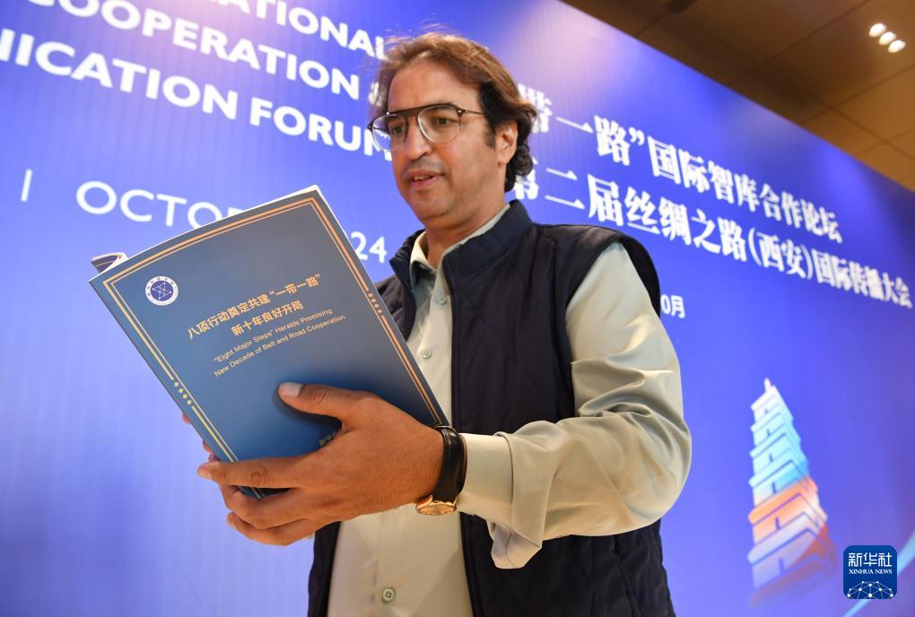 當(dāng)日,在“一帶一路”國際智庫合作論壇暨第二屆絲綢之路(西安)國際傳播大會上,新華社國家高端智庫發(fā)布了《八項(xiàng)行動奠定共建“一帶一路”新十年良好開局》智庫報(bào)告。新華社記者 邵瑞 攝