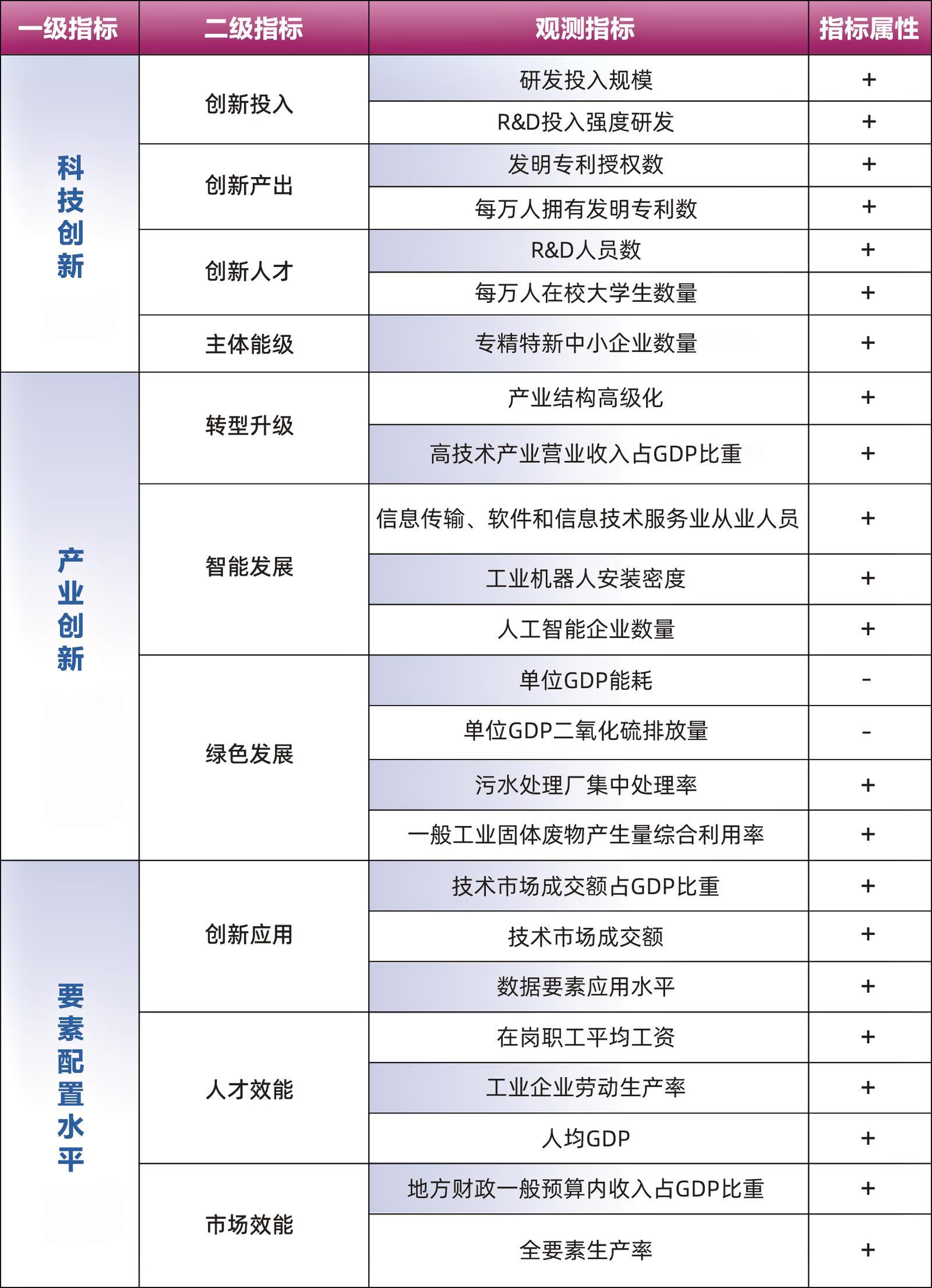 《報告》構(gòu)建涵蓋科技創(chuàng)新、產(chǎn)業(yè)創(chuàng)新、要素配置三大維度的指標(biāo)體系,下設(shè)10余項二級指標(biāo),全面評估城市新質(zhì)生產(chǎn)力發(fā)展水平??萍紕?chuàng)新是新質(zhì)生產(chǎn)力的核心驅(qū)動,是突破傳統(tǒng)生產(chǎn)要素約束、催生新產(chǎn)業(yè)新動能的關(guān)鍵。將科技創(chuàng)新作為一級指標(biāo),直接對應(yīng)新質(zhì)生產(chǎn)力“創(chuàng)新起主導(dǎo)作用”的本質(zhì)特征。產(chǎn)業(yè)創(chuàng)新是新質(zhì)生產(chǎn)力的落地載體,也是發(fā)展新質(zhì)生產(chǎn)力的落腳點(diǎn),通過傳統(tǒng)產(chǎn)業(yè)轉(zhuǎn)型升級、戰(zhàn)略性新興產(chǎn)業(yè)培育發(fā)展與未來產(chǎn)業(yè)規(guī)劃布局,推動現(xiàn)代化產(chǎn)業(yè)體系完善與經(jīng)濟(jì)高質(zhì)量發(fā)展。要素配置是新質(zhì)生產(chǎn)力的效率保障,通過優(yōu)化創(chuàng)新應(yīng)用、人才效能、市場效能,提升全要素生產(chǎn)率。新質(zhì)生產(chǎn)力不同于以往只強(qiáng)調(diào)科技單一維度的評價,該體系強(qiáng)調(diào)系統(tǒng)觀,涵蓋技術(shù)革命性突破、產(chǎn)業(yè)深度轉(zhuǎn)型升級和生產(chǎn)要素創(chuàng)新性配置3個層面,其中“新”代表著新技術(shù)與新產(chǎn)業(yè),“質(zhì)”代表著高效能與高質(zhì)量。