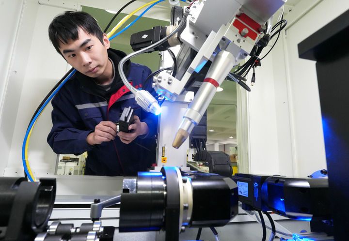 2025年1月7日,浙江省紹興市上虞區(qū)浙江創(chuàng)新激光設(shè)備有限公司技術(shù)人員在調(diào)試四軸聯(lián)動(dòng)工作臺(tái)激光焊接機(jī)。近年來,紹興市上虞區(qū)積極發(fā)展新質(zhì)生產(chǎn)力,專精特新企業(yè)培育成效顯著,有效助力經(jīng)濟(jì)發(fā)展。新華社記者 翁忻旸 攝