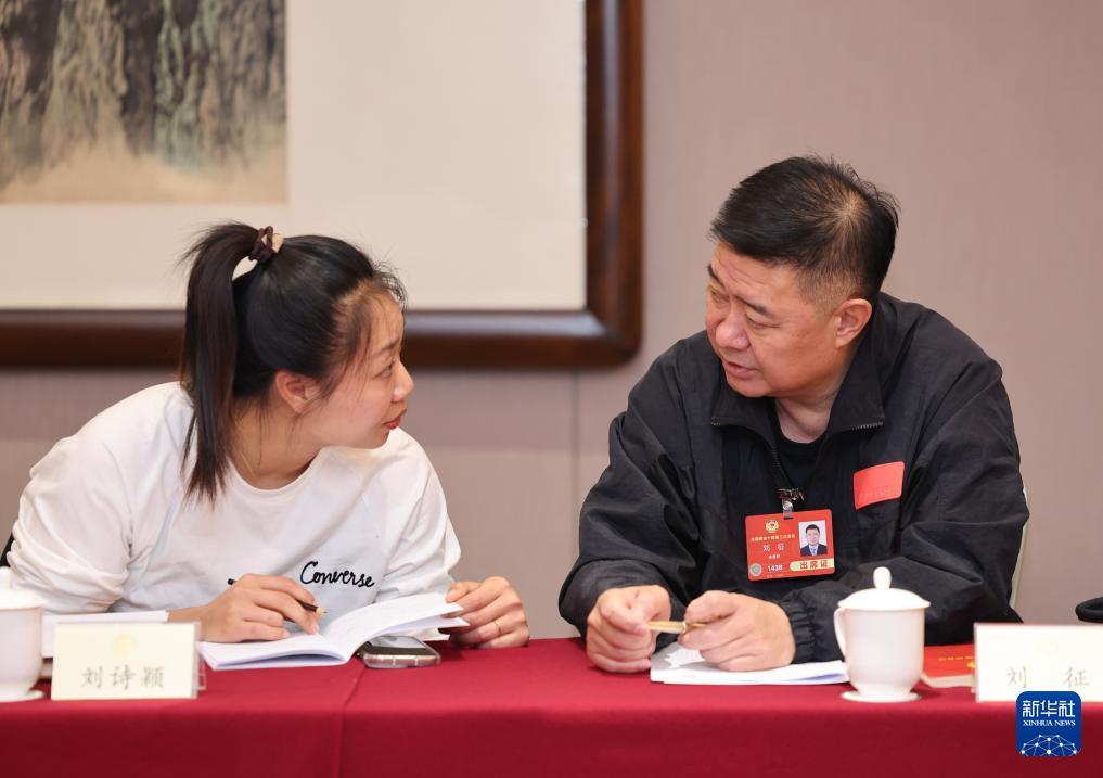 3月5日,全國政協(xié)委員劉詩穎(左)與劉征交流。