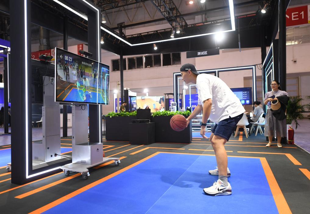 2023年8月25日,在HICOOL2023全球創(chuàng)業(yè)者峰會(huì)展覽展示區(qū),觀眾體驗(yàn)AI智慧體育運(yùn)動(dòng)系統(tǒng)。當(dāng)日,HICOOL2023全球創(chuàng)業(yè)者峰會(huì)在位于北京市順義區(qū)的中國(guó)國(guó)際展覽中心(新館)開(kāi)幕。新華社記者 任超 攝
