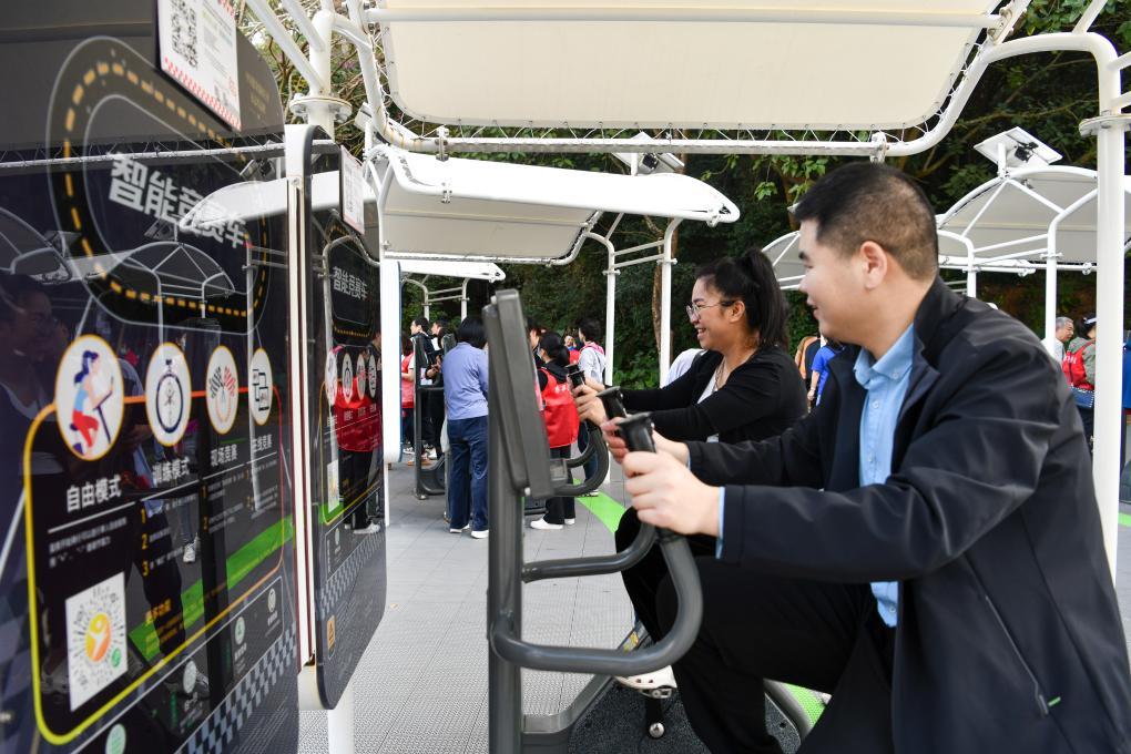 2023年4月24日,市民在福州市鼓樓區(qū)西河智慧體育公園使用智能競(jìng)賽健身車。新華社記者 林善傳 攝