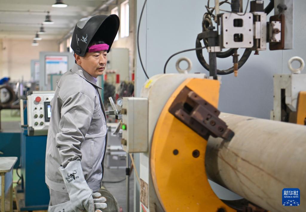 在中石化第四建設(shè)有限公司工匠學(xué)院,全國人大代表、中石化第四建設(shè)有限公司工匠學(xué)院焊接教練張振連操作自動焊機(jī)(2025年2月21日攝)。