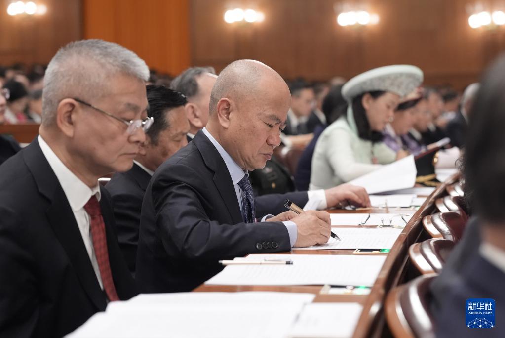 3月5日,全國人大代表、重慶紅江機(jī)械有限責(zé)任公司加工中心特級技師傅國濤在北京人民大會堂出席十四屆全國人大三次會議開幕會。