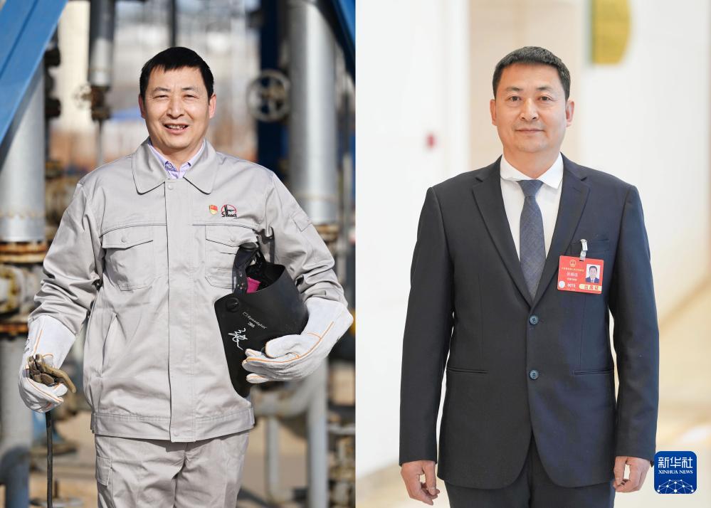 拼版照片:左圖為在中石化第四建設(shè)有限公司工匠學(xué)院拍攝的全國人大代表、中石化第四建設(shè)有限公司工匠學(xué)院焊接教練張振連(新華社記者李然2025年1月21日攝);右圖為在十四屆全國人大三次會議天津代表團(tuán)駐地拍攝的張振連(新華社記者邢廣利2025年3月3日攝)。