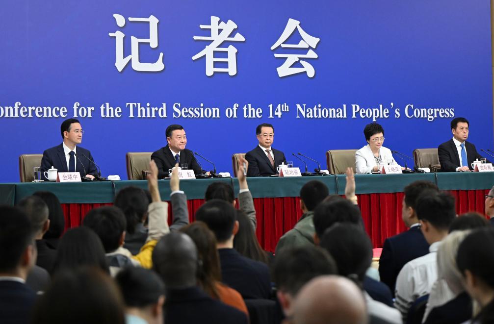 3月9日,十四屆全國人大三次會議在北京梅地亞中心新聞發(fā)布廳舉行記者會。民政部部長陸治原、人力資源和社會保障部部長王曉萍、住房和城鄉(xiāng)建設(shè)部部長倪虹、國家衛(wèi)生健康委員會主任雷海潮就民政、就業(yè)和社會保障、住房、衛(wèi)生健康等相關(guān)問題回答中外記者提問。這是記者在提問。