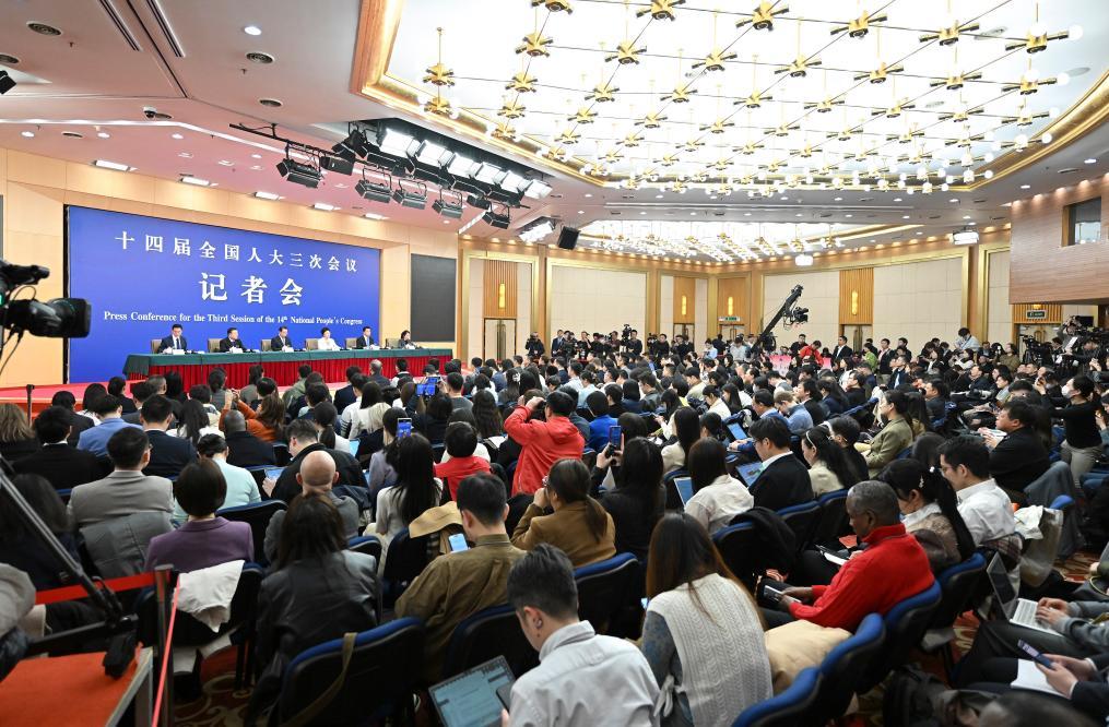 3月9日,十四屆全國人大三次會議在北京梅地亞中心新聞發(fā)布廳舉行記者會。民政部部長陸治原、人力資源和社會保障部部長王曉萍、住房和城鄉(xiāng)建設(shè)部部長倪虹、國家衛(wèi)生健康委員會主任雷海潮就民政、就業(yè)和社會保障、住房、衛(wèi)生健康等相關(guān)問題回答中外記者提問。這是新華社記者在提問。