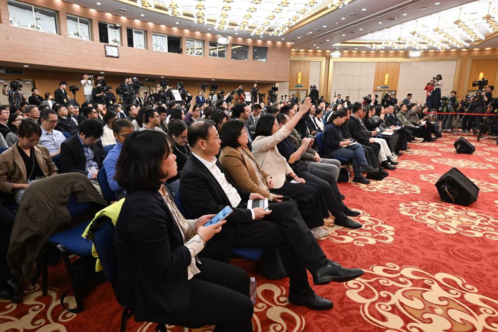 3月9日,十四屆全國人大三次會議在北京梅地亞中心新聞發(fā)布廳舉行記者會。民政部部長陸治原、人力資源和社會保障部部長王曉萍、住房和城鄉(xiāng)建設(shè)部部長倪虹、國家衛(wèi)生健康委員會主任雷海潮就民政、就業(yè)和社會保障、住房、衛(wèi)生健康等相關(guān)問題回答中外記者提問。這是記者在現(xiàn)場采訪。