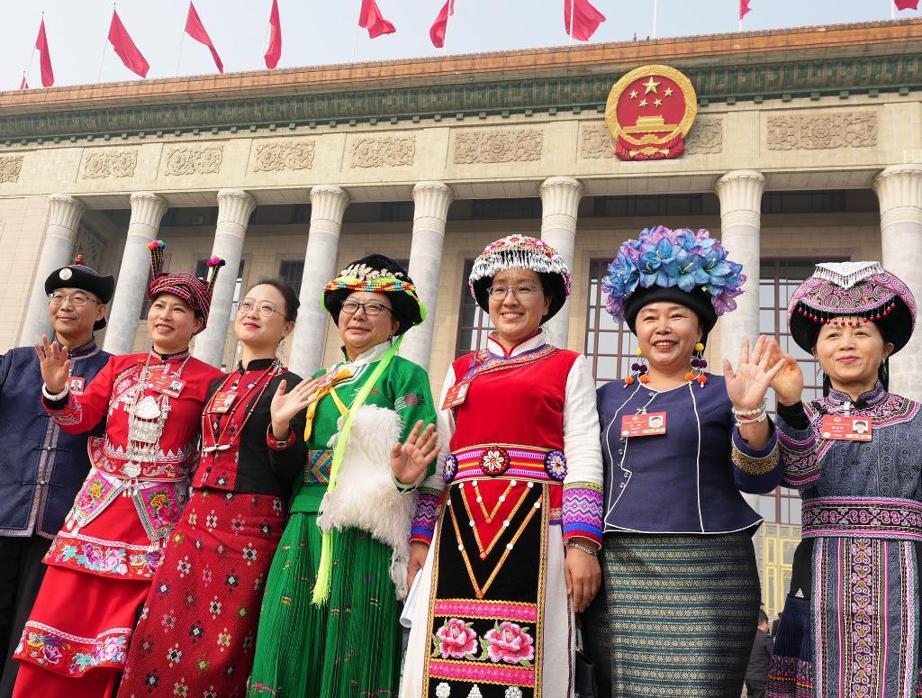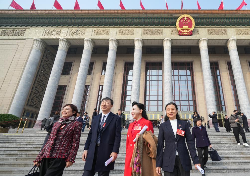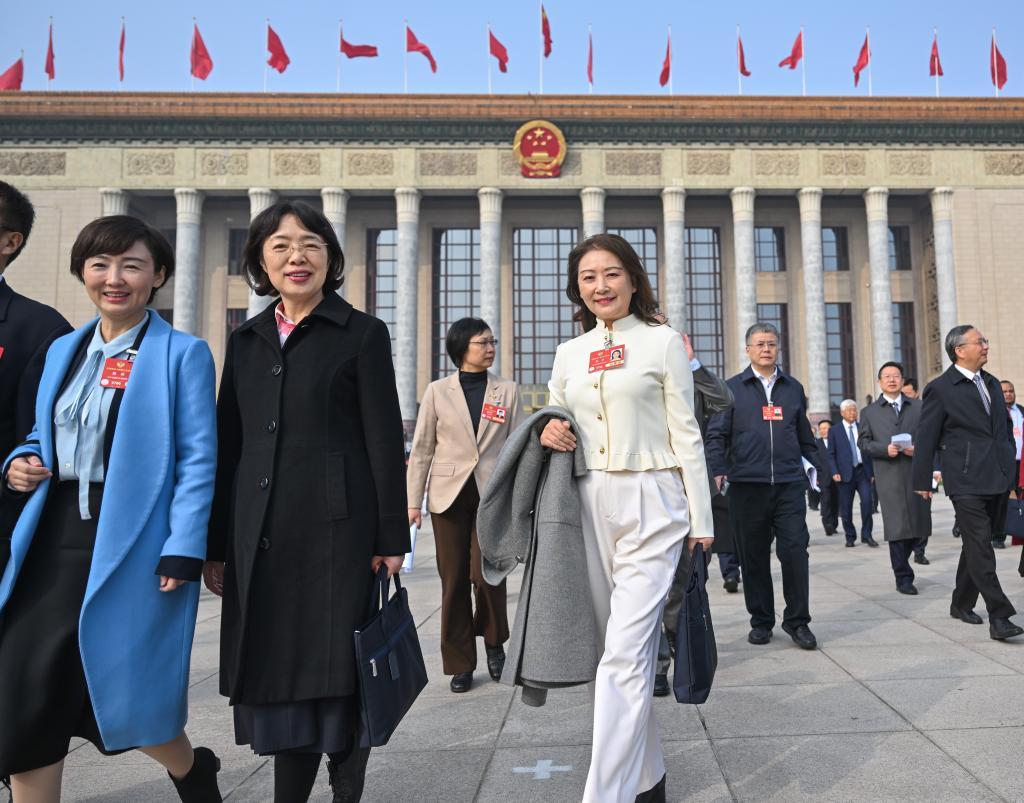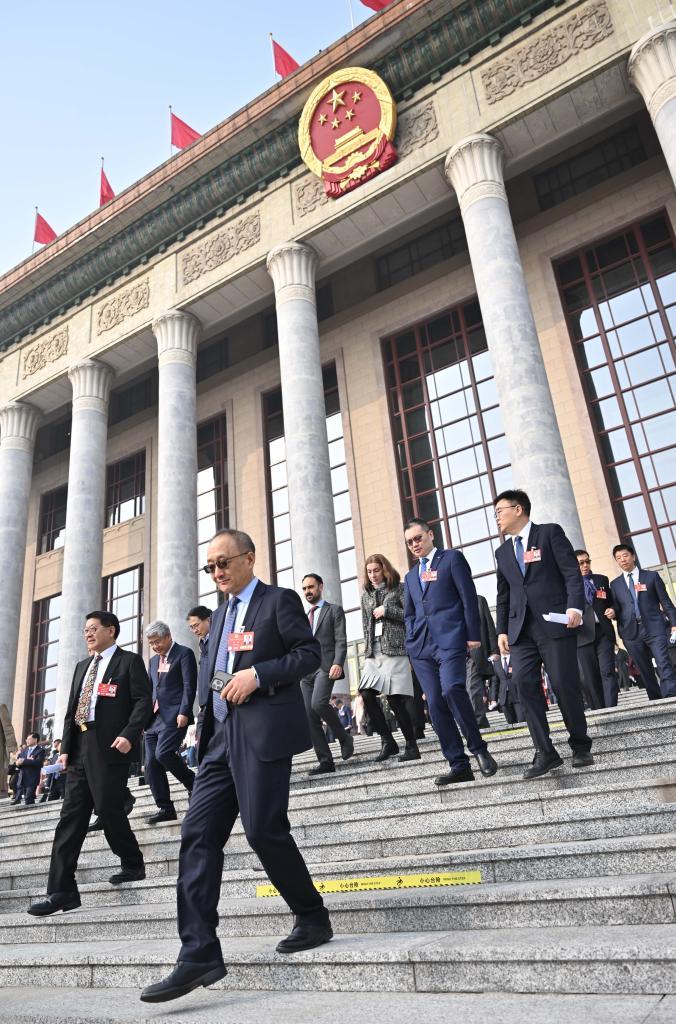 3月10日,全國(guó)政協(xié)十四屆三次會(huì)議在北京人民大會(huì)堂舉行閉幕會(huì)。這是閉幕會(huì)后,委員們走出人民大會(huì)堂。