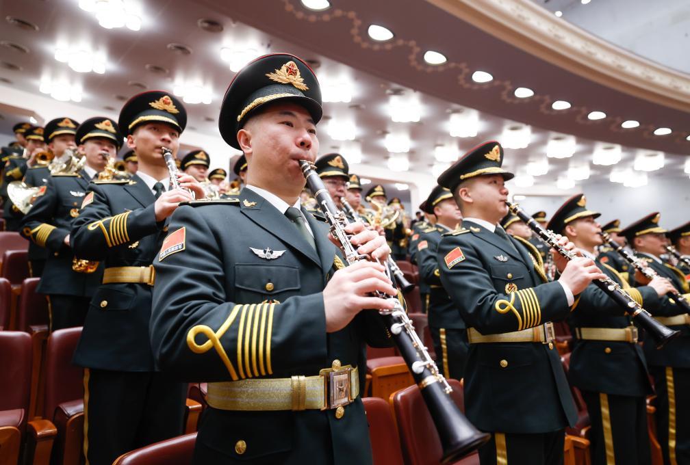 3月10日,全國(guó)政協(xié)十四屆三次會(huì)議在北京人民大會(huì)堂舉行閉幕會(huì)。這是軍樂(lè)團(tuán)在演奏。
