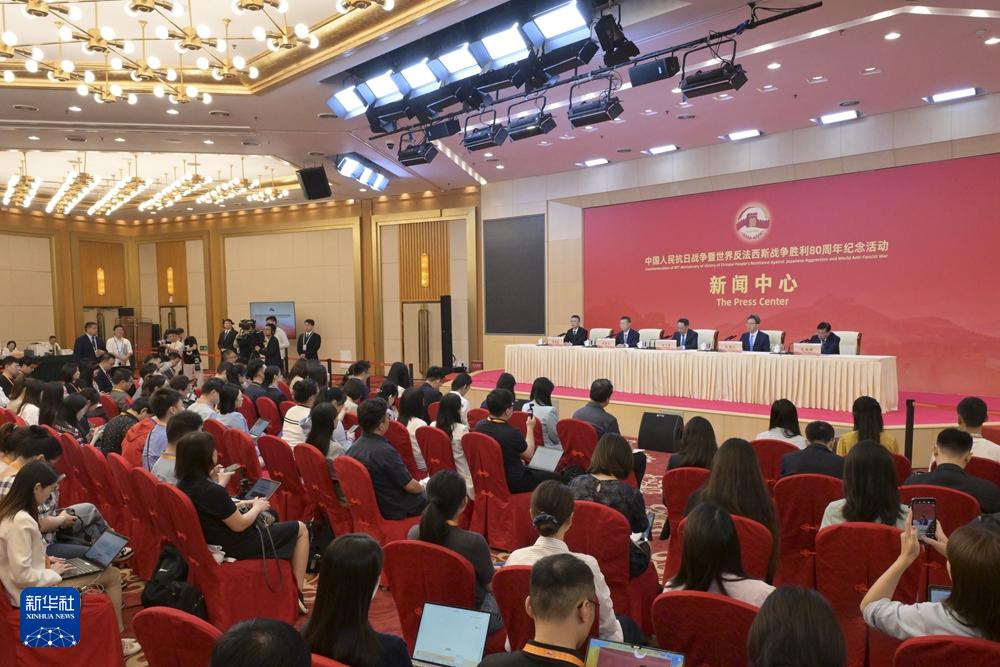 8月31日,中國人民抗日戰(zhàn)爭暨世界反法西斯戰(zhàn)爭勝利80周年紀(jì)念活動新聞中心在北京舉辦第三場記者招待會,退役軍人事務(wù)部副部長馬飛雄、國家文物局副局長孫德立介紹第四批國家級抗戰(zhàn)紀(jì)念設(shè)施、遺址名錄和著名抗日英烈、英雄群體名錄,抗戰(zhàn)紀(jì)念設(shè)施和抗戰(zhàn)遺址、遺物修繕保護(hù)等方面情況,并回答記者提問。新華社記者 李賀 攝