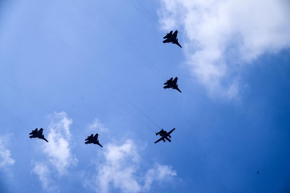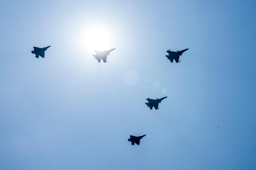 9月3日,紀念中國人民抗日戰(zhàn)爭暨世界反法西斯戰(zhàn)爭勝利80周年大會在北京隆重舉行。這是艦載機梯隊接受檢閱。新華社記者 夏一方 攝
