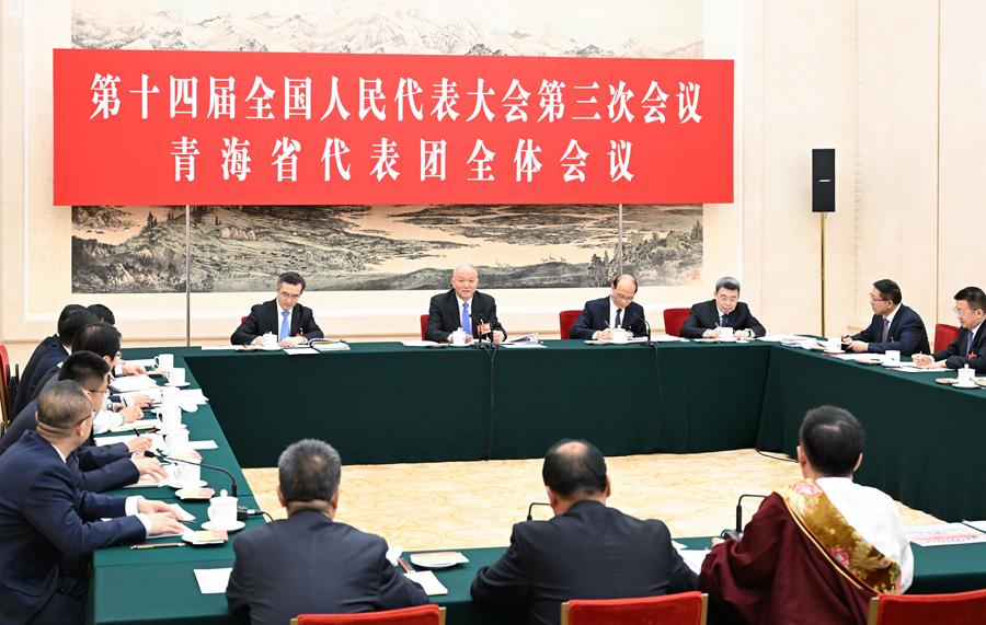 中共中央政治局常委、中央書記處書記蔡奇7日上午來到他所在的青海代表團,同代表們一起審議。